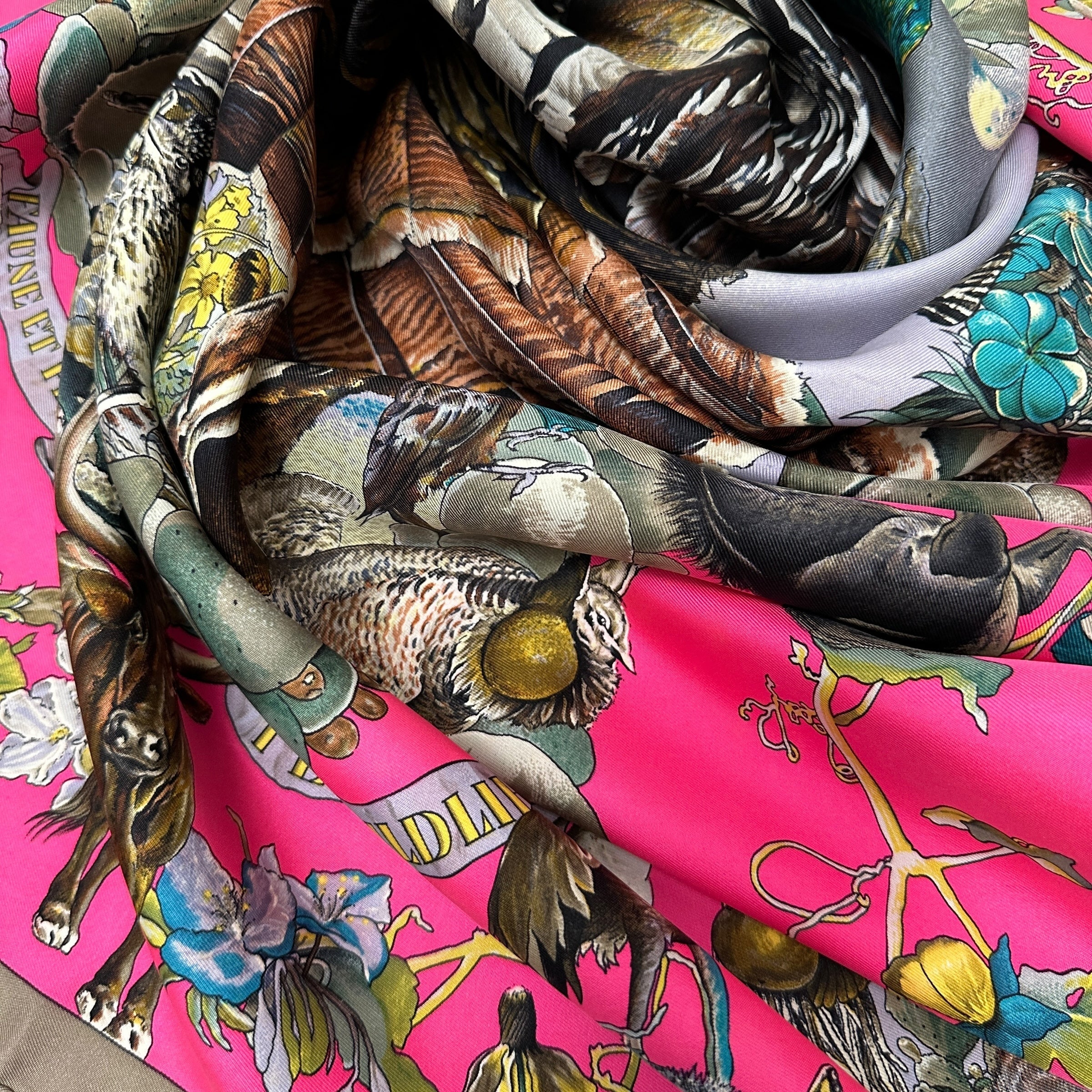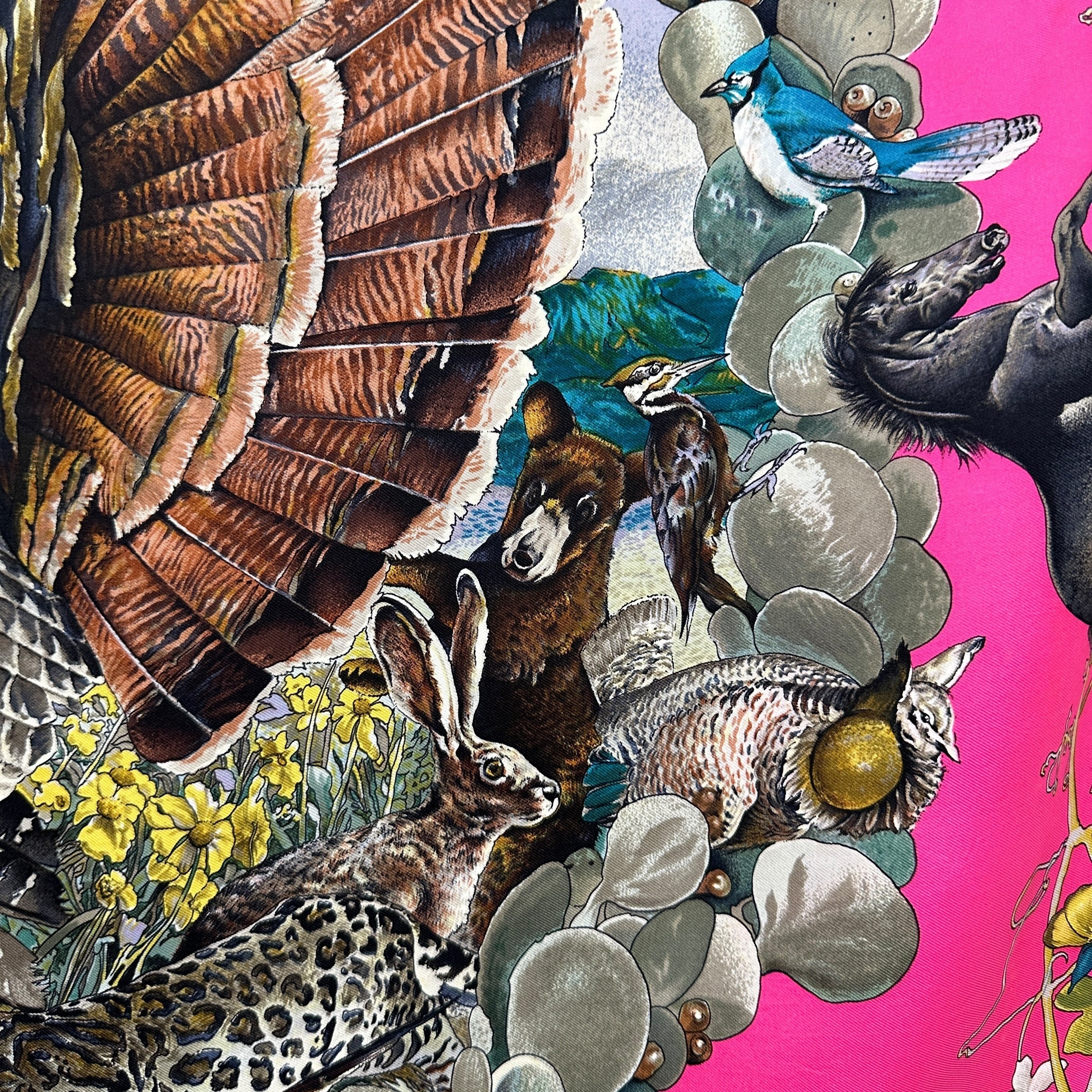 Foulard Hermès 90 cm – Faune et Flore du Texas – Kermit Oliver (1987)